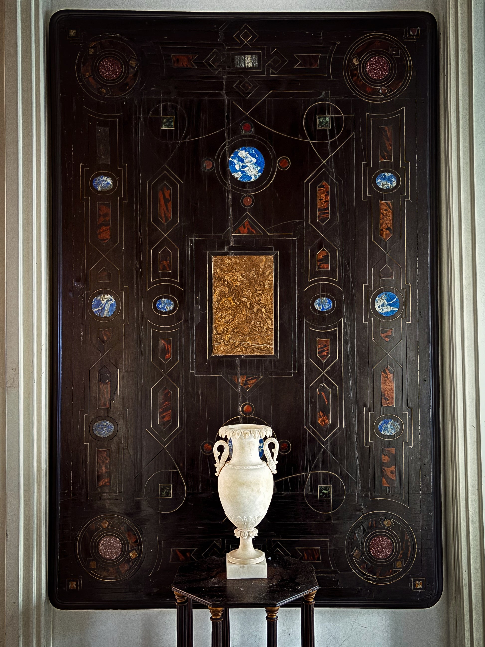 Exceptional in its scale (139 × 89 cm) and in the concentration of rare stones; imperial porphyry, green porphyry, lapis lazuli, Sicilian jasper, carnelian, and the ancient stromatolitic central plaque. This panel embodies the material ambition and decorative vocabulary of late-Baroque and early-18th century Italian workshops. Its survival and later conservation underscore its long-standing importance.
