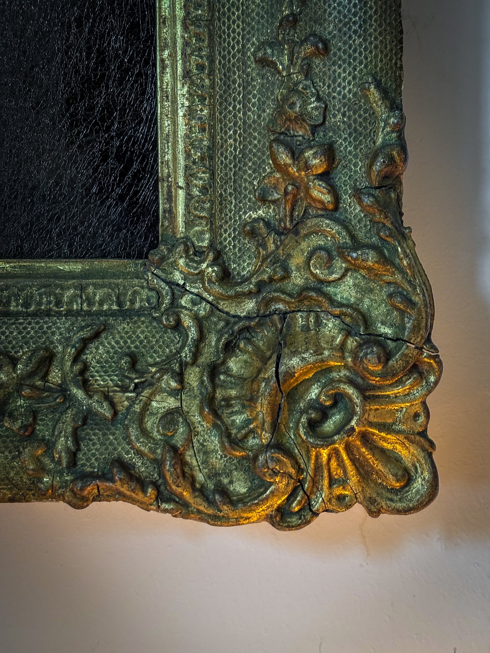 Original canvas on its early strainer, gilt gesso frame, stable craquelure and aged varnish throughout.