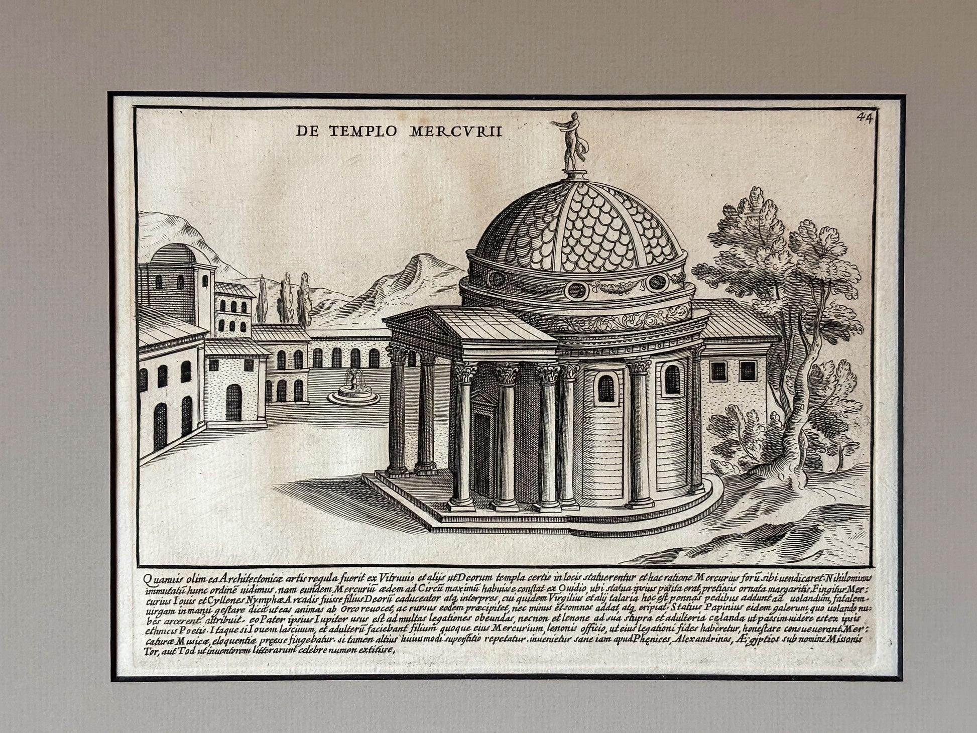 • De Templo Mercurii – a circular, domed temple of Mercury with a ring of columns and surrounding forum buildings set against a mountainous backdrop.